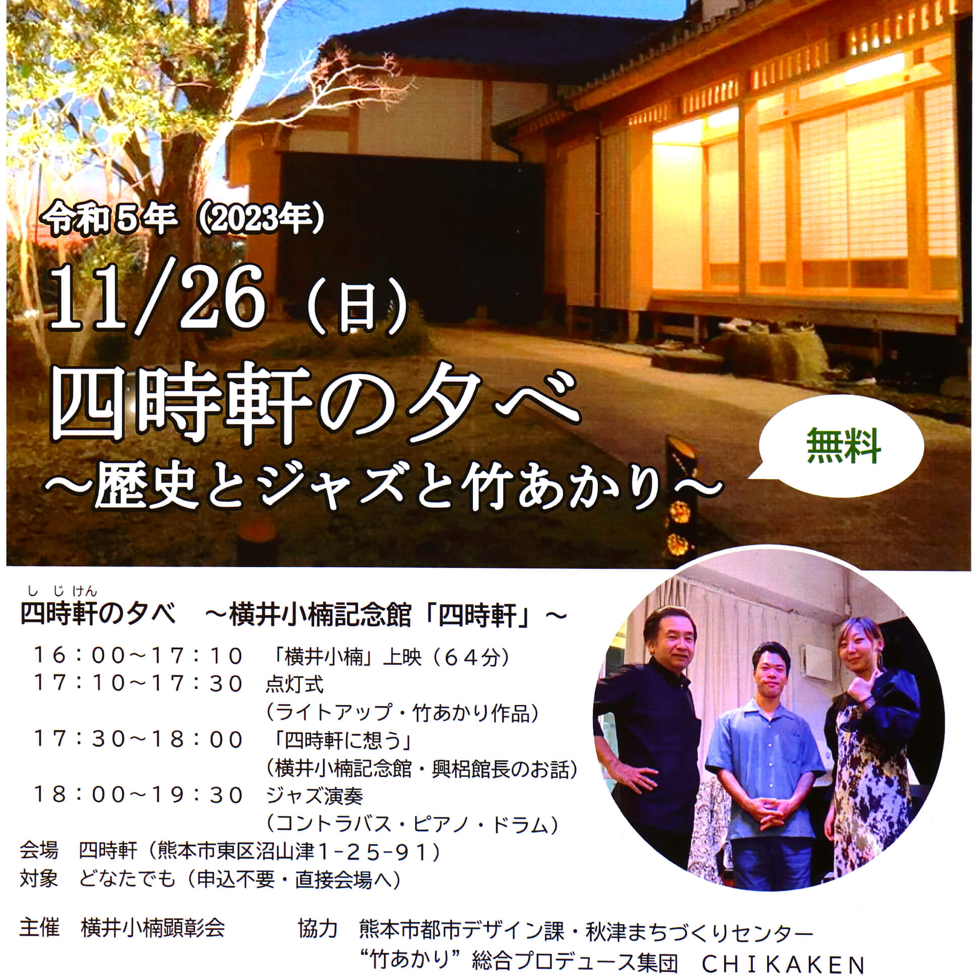 - 17:30〜18:00 「四時軒に想う」(横井小楠記念館・興梠館長のお話)